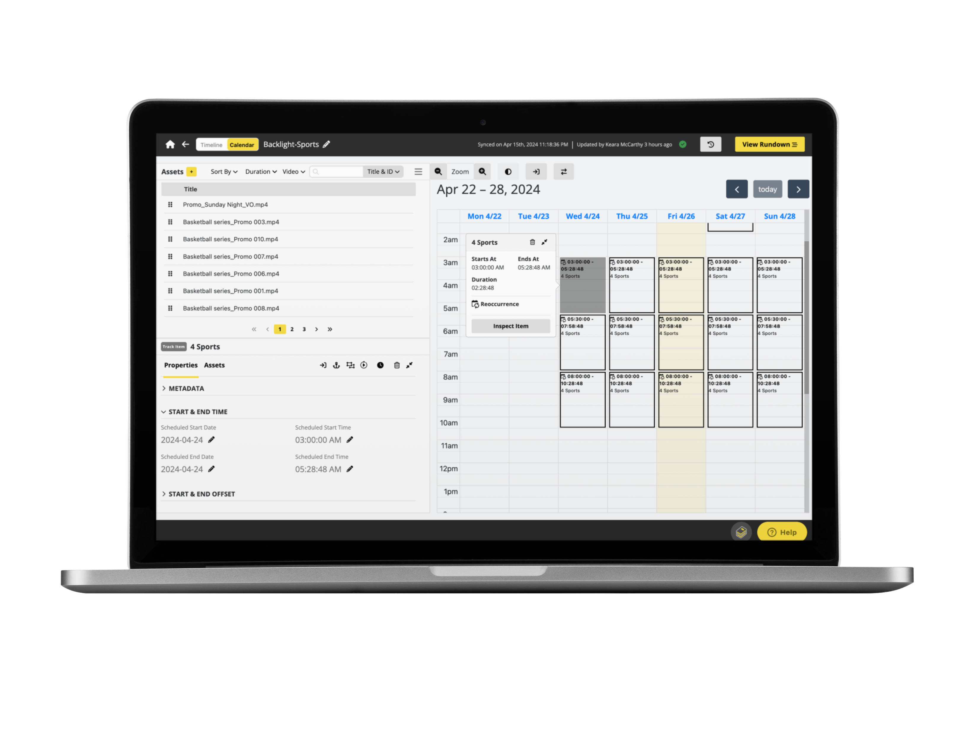 Our new Calendar view of the playout channel scheduler affords a more comprehensive view of playout channel content, allowing users to program channels from a calendar view instead of a horizontal timeline view. Leverage the same drag-and-drop functionality to place channel assets in vertical programming schedules and see a whole week’s worth of content in one panel. Easily jump ahead to future weeks using arrow buttons to plan ahead and make adjustments well in advance of airtime.